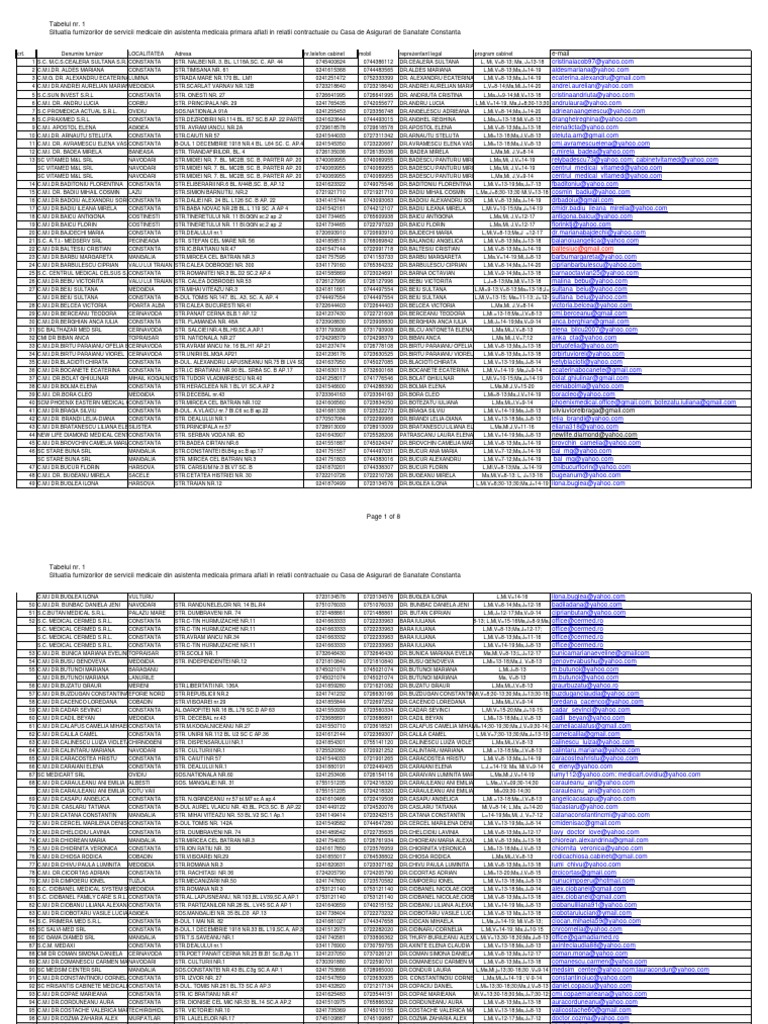 vizitati articolul complet aici : https://dokumen.tips/documents/casa-de-asigurari-de-sanatate-constanta-bd-mf0015-19800039-cmi-dr-vladuta.html Reprezentanţii farmaciilor din tulcea reclamă că nu au mai primit banii pentru reţetele compensate de luni de zile. Romania, constanţa, constanţa, bulevardul mamaia. Asigurari sanatate, casa de asigurari de sanatate constanta, servicii de evaluare, diagnostic sarcina, asistenta medicala, consultanta asigura functionarea unitara a sistemului asigurarilor sociale de sanatate din tara casa nationala de asigurari de sanatate calea calarasilor.