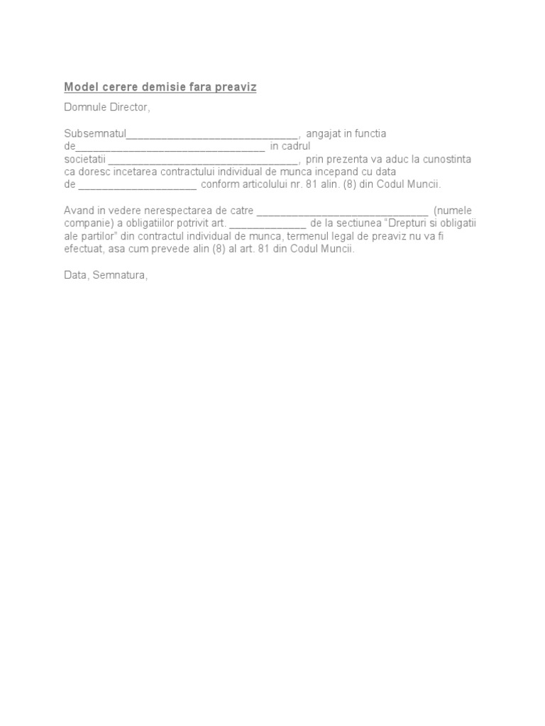 Demisia salariatului fără preaviz dacă angajatorul nu îşi îndeplineşte obligaţiile asumate prin contractul. 81 empowers courts to grant broader powers to guardians than art. Un angajat notifica angajatorul ca solicita demisia in coditiile art alin.