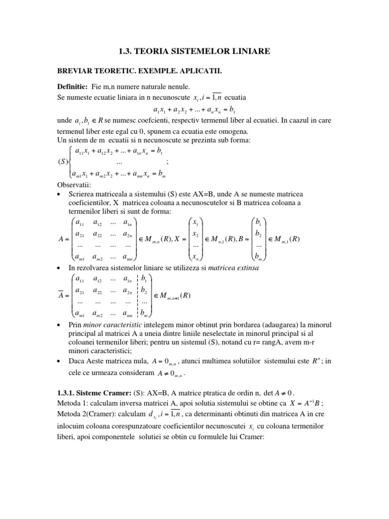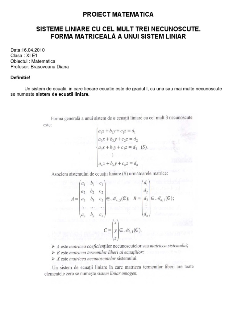 Sistem cu 3 ecuații și 3 necunoscute. Un sistem de ecuații liniare este un sistem de ecuații de forma: Sisteme de ecuaţii liniare omogene.