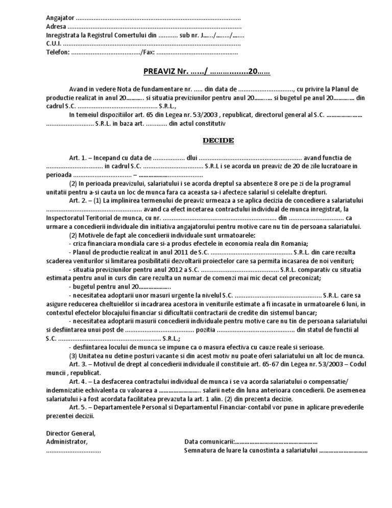 Gasesti 8 produse cu exemple si studii de caz explicate amanuntit in libraria rentrop & straton. Vizați de concediere nu sunt muncitorii, ci personalul tesa. Documents similar to model decizie concediere individuala.