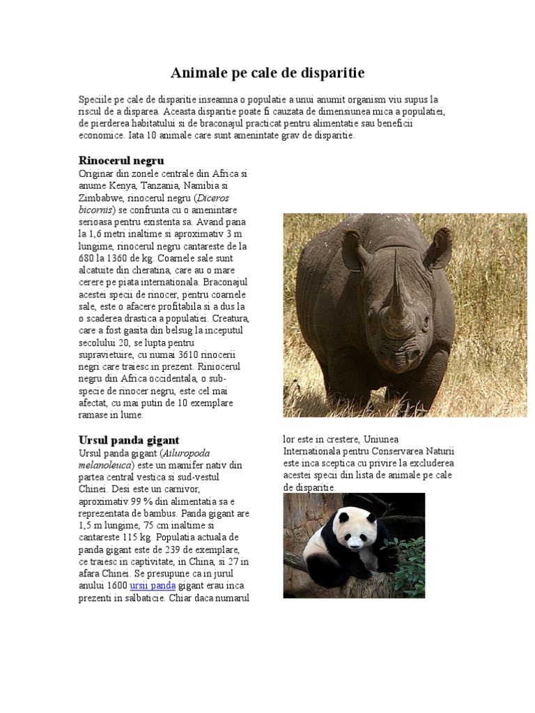 untuk "Animale Pe Cale De Disparitie Din Lume"