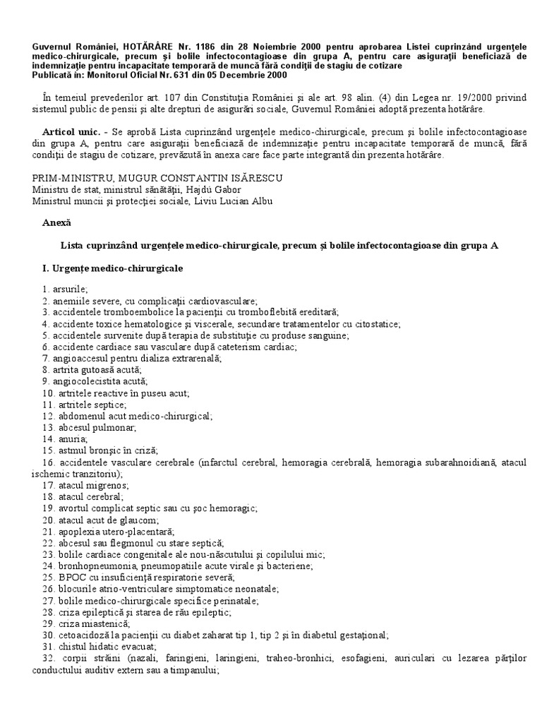 Ulcerul gastroduodenal în puseu acut. Aceste lucruri sunt conform ordinului nr. Sau a bolilor infectocontagioase din grupa a din duratele de acordare a concediilor medicale, exprimate în zile calendaristice, se plătesc zilele lucrătoare: